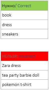 5. Следите за правописанием. Наименования товаров, написанные с орфографическими ошибками, система не примет. НЕЛЬЗЯ: shouse вместо shoes